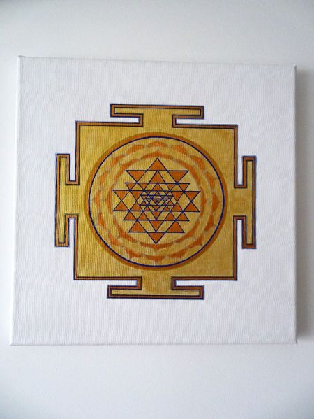 Šri jantra sa uljem ćilibara crvene pozadine, 25x35 cm: