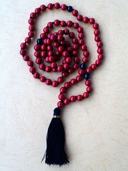 Crveni ahat uz privezak lotos mandala (108 perli veličine 6 mm i guru ):