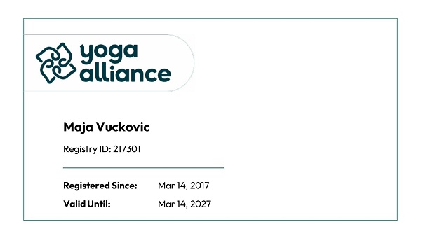 Iskusni registrovani učitelj joge (E-RYT 500) i Pružalac kontinuirane edukacije (YACEP):