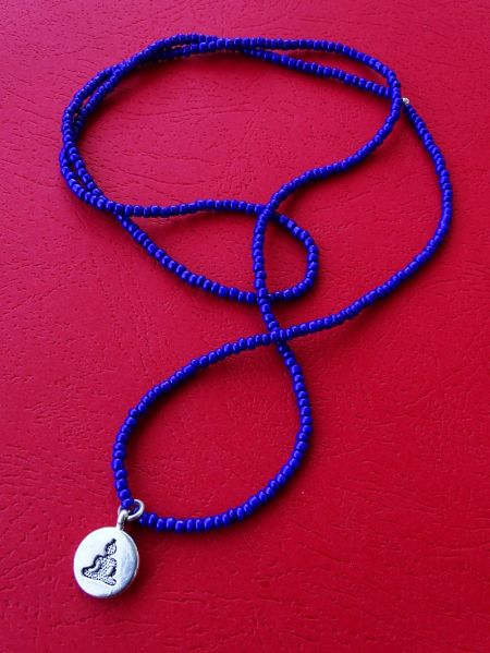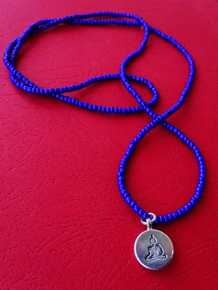 Lančić za struk od perlica s priveskom Buda od tibetanskog srebra. Plavo-ljubičasti.