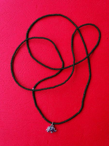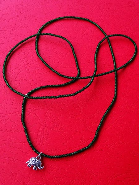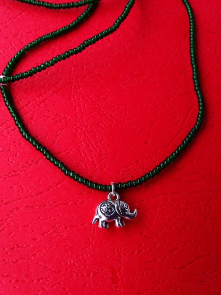 Lančić za struk od perlica s priveskom u obliku slonića i OM simbolom. Zelena.