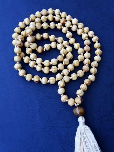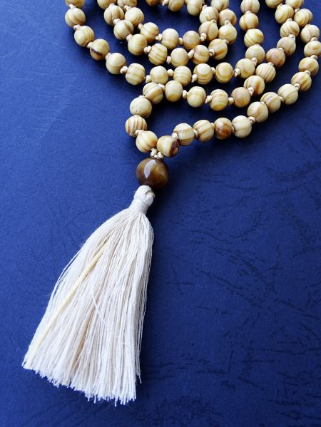 108 perli veličine 8 mm i tzv. guru (graničnik) od 12 mm nanizanih na satenski konac.